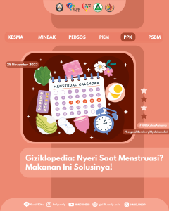 Pernah gak sih ngerasain nyeri saat sebelum ataupun saat menstruasi? Nyeri menstruasi atau dismenore adalah perasaan nyeri atau kram pada bagian perut yang disebabkan oleh berbagai faktor-faktor tertentu, dan salah satu hal yang dapat meredakannya adalah dengan asupan gizi tertentu seperti kalsium, magnesium, omega-3, dan lain sebagainya. Untuk info selengkapnya, yuk simak giziklopedia di bawah ini!
