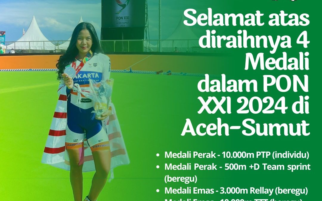 15 September 2024 — Alifia Meidia Namasta, seorang mahasiswi Program Studi S1 Gizi Fakultas Kedokteran Universitas Diponegoro, berhasil mencetak prestasi gemilang pada Pekan Olahraga Nasional (PON) XXI 2024 yang diadakan di Aceh-Sumatera Utara. Alifia sukses membawa pulang empat medali, terdiri dari dua medali emas dan dua medali perak, dalam cabang olahraga sepatu roda.