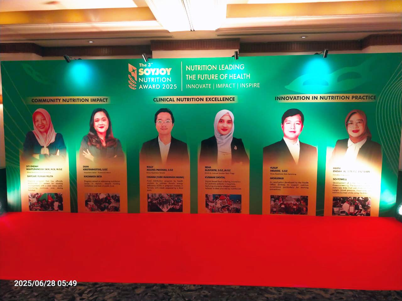 Semarang, 2 Juli 2025 — Prestasi membanggakan kembali diraih oleh Universitas Diponegoro. Yusuf Hidayat, S.Gz, alumni Program Studi S1 Ilmu Gizi Fakultas Kedokteran UNDIP, berhasil meraih penghargaan kategori “Innovation in Nutrition Practice” dalam ajang bergengsi The 3rd SoyJoy Nutrition Award 2025.