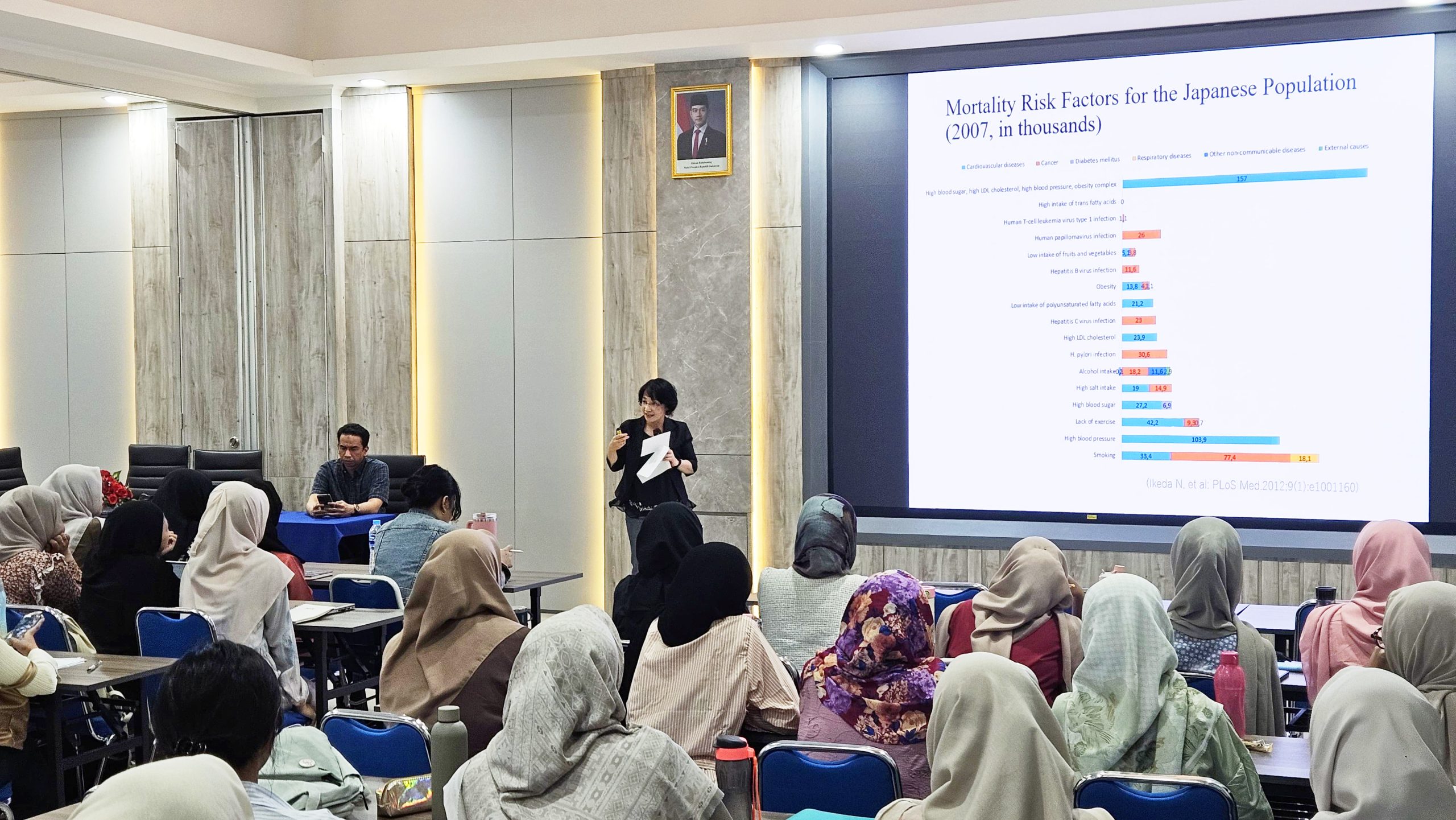 Kegiatan yang dipandu oleh Ahmad Syauqy, S.Gz., M.P.H., PhD, RD ini dihadiri oleh ratusan mahasiswa dari Program Sarjana, Profesi Dietisien, hingga Magister Ilmu Gizi FK Undip. Ketua Departemen Ilmu Gizi, Gemala Anjani, S.P., M.Si., Ph.D., dalam sambutannya menyampaikan harapan agar mahasiswa dapat mengambil inspirasi dari sistem Jepang yang berorientasi pada pembentukan kebiasaan makan sehat sejak usia dini.